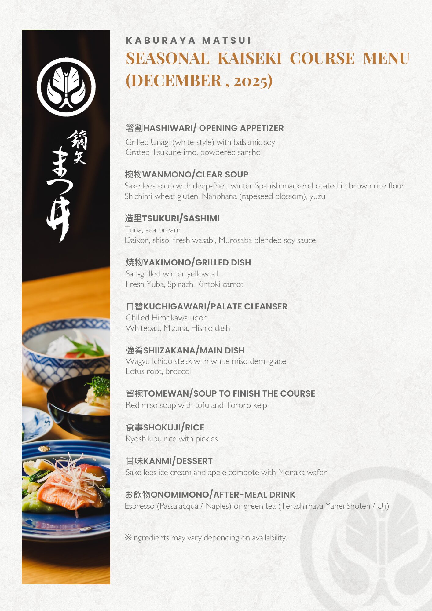 Kaiseki cuisine offers a delightful experience of the four seasons and their transitions, showcasing the delicate and profound flavors of abundant seasonal ingredients. While rooted in tradition, there are no strict rules; feel free to savor your meal at your own pace, accompanied by your favorite beverage.